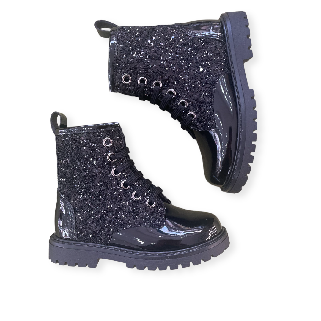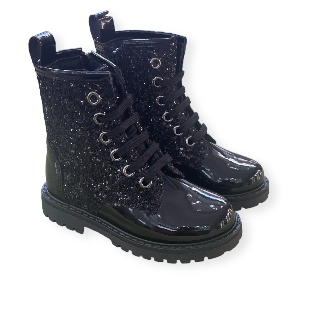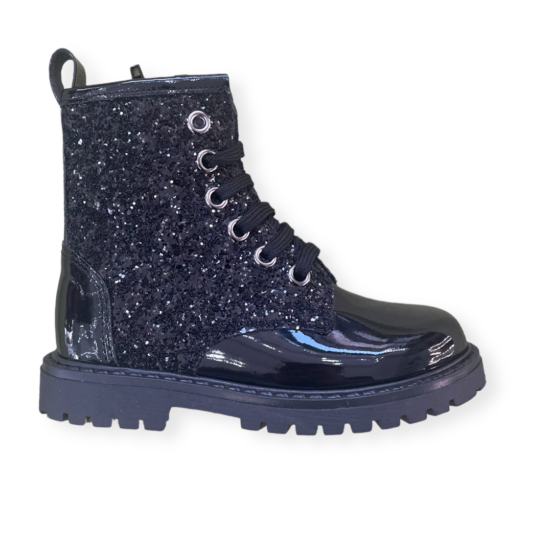 Μποτακι Ricco ελληνικής κατασκευής με λαμπερο γκλιτερ και λουστρινι για γιορτινες εμφανισεις τα οποια αποτελούν την πιο κλασική επιλογή για καθημερινή χρήση.Με δερμάτινο ανατομικό πέλμα και αντιολησθητικη σολα.Κλεινει με κορδονια και φερμουαρ.