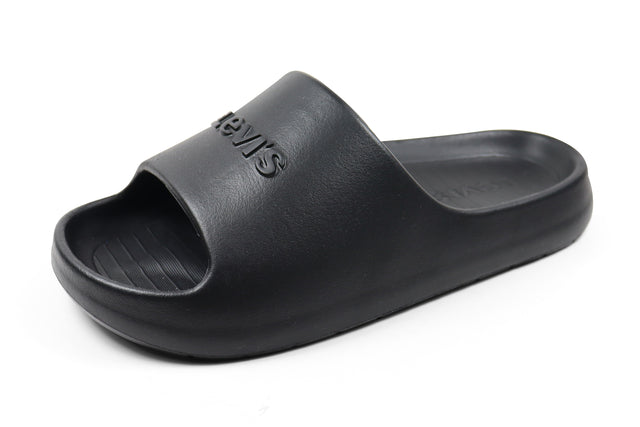 Σαγιονάρες τύπου slides, της εταιρείας Levi's, σε μαύρο χρώμα. Οι σαγιονάρες slides ή τύπου κολυμβητηρίου όπως ονομάζονται εναλλακτικά, είναι σχεδιασμένες έτσι ώστε να κρατάνε σταθερό το κουντεπιέ του ποδιού.