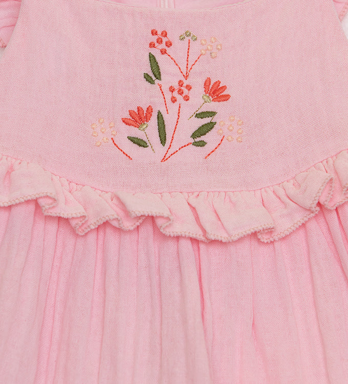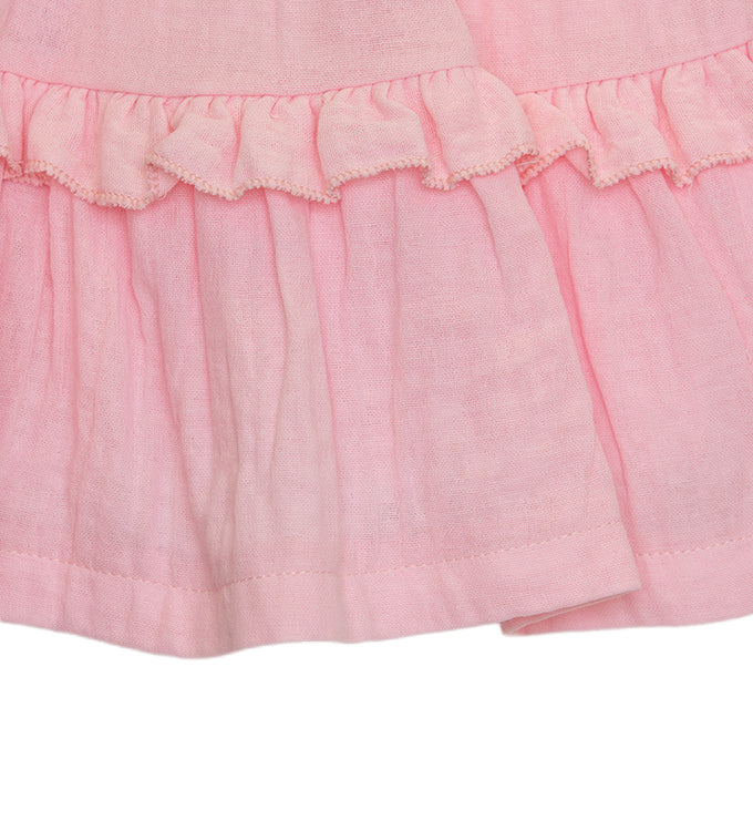 Το παιδικό ρούχο restart της φωτογραφίας είναι ένα αέρινο αμάνικο φόρεμα σε απαλή ροζ απόχρωση, ιδανικό για τις ζεστές καλοκαιρινές ημέρες.