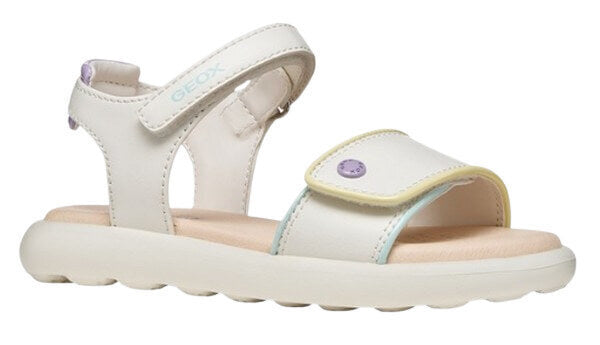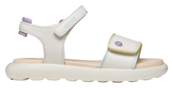 Πέδιλο Geox λευκό (J65MSC 05402 C0653 WHITE/MULTICOLOR) για παιδιά. Τα πέδιλα διαθέτουν αυτοκόλλητο Velcro για σταθερότητα και άνεση. Η κατασκευή τους περιλαμβάνει ραφές αντοχής και κομψό design σε λευκό χρώμα με λεπτομέρεια στο μπροστινό μέρος.