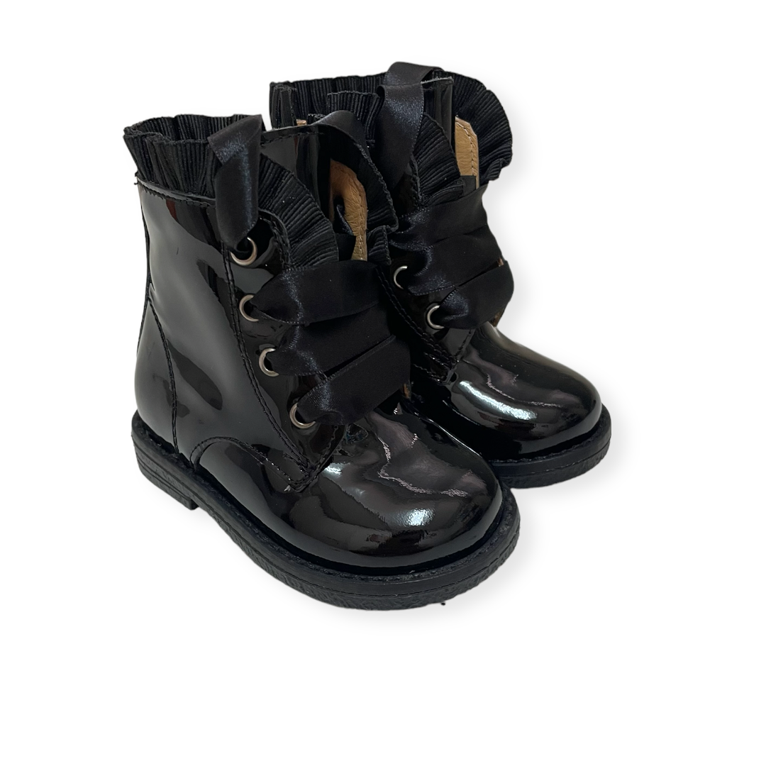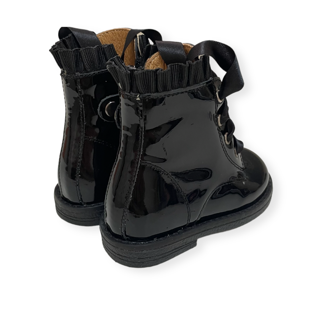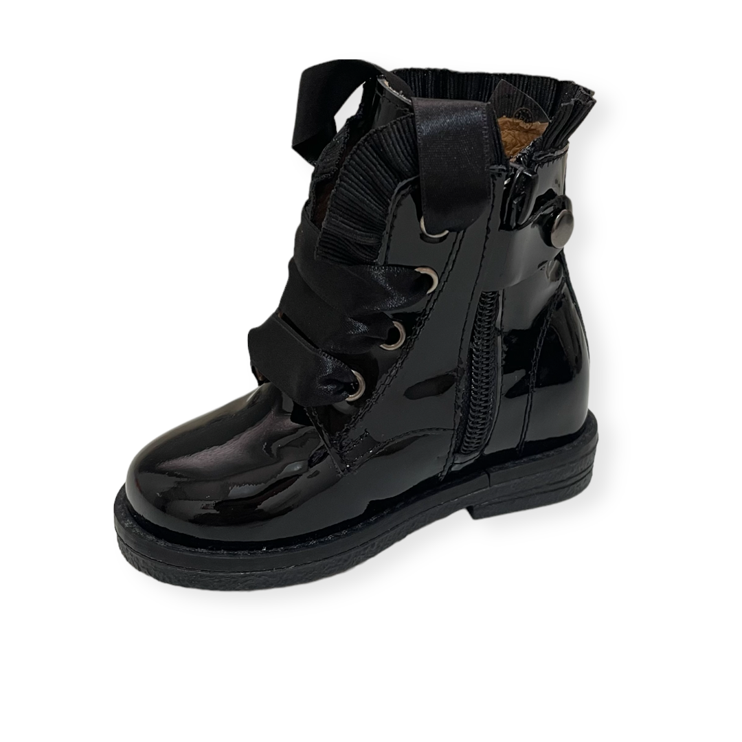 Bonito Αρβυλακι μαυρο λουστρινι ελληνικης κατασκευεις.Με εσωτερικη δερματινη επενδυση, πατο δερμάτινο και αντιολισθητική σόλα.Διακοσμητικο πλισε στο επανω μερος για στιλ και κομψοτητα.Διαθέτουν κορδόνια, για να προσαρμόζονται άψογα στο πόδι και φερμουάρ για εύκολη εφαρμογή και αφαίρεση.