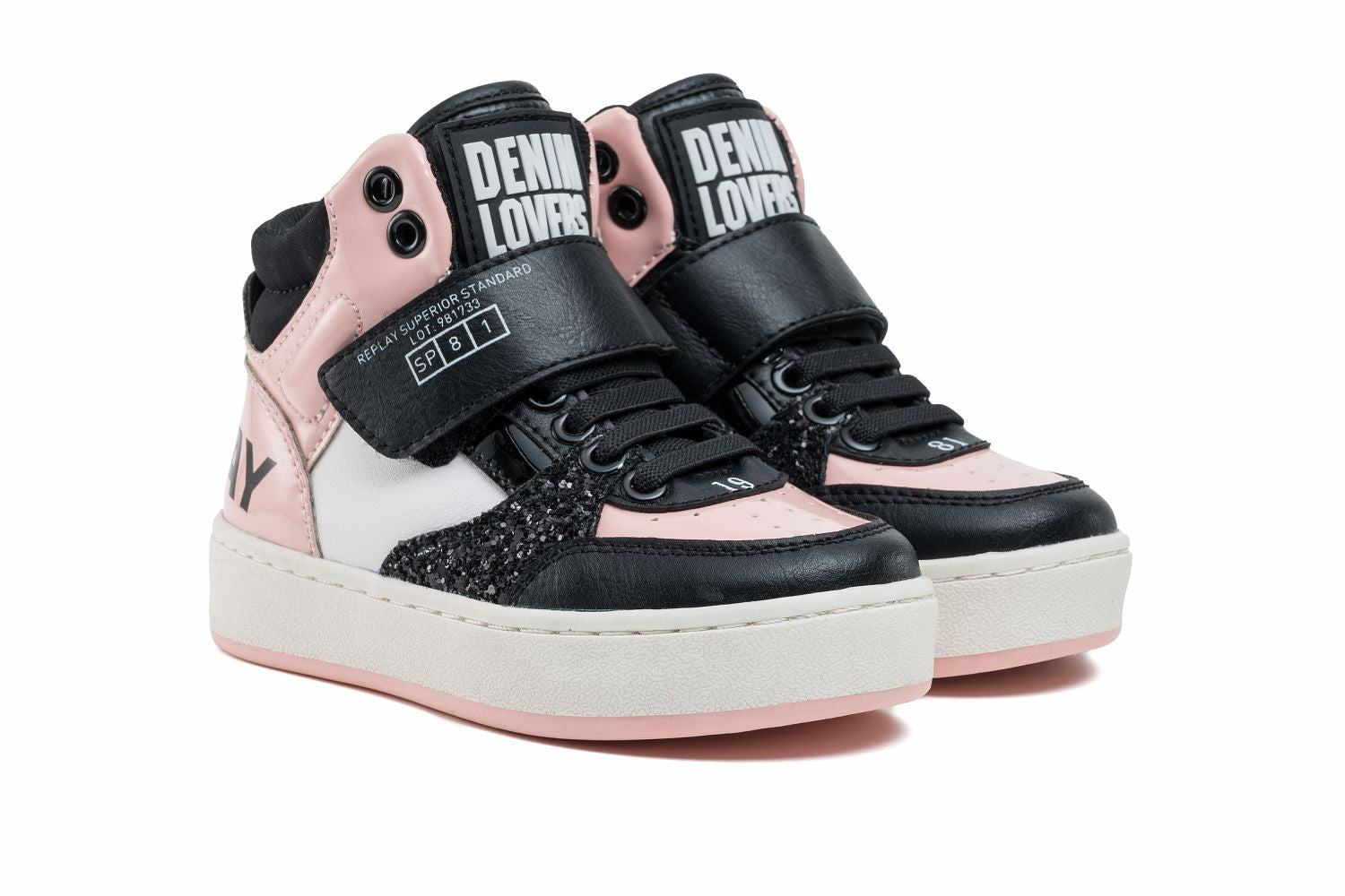 REPLAY COBRA KID 1 0746-BLACK WHITE PINK