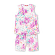 This kids' summer set features a sleeveless top and short shorts, decorated with a bright floral pattern in shades of violet, turquoise and pink. The top has a loose fit for a comfortable fit, while the shorts offer freedom of movement. Ideal for everyday activities and hot summer days