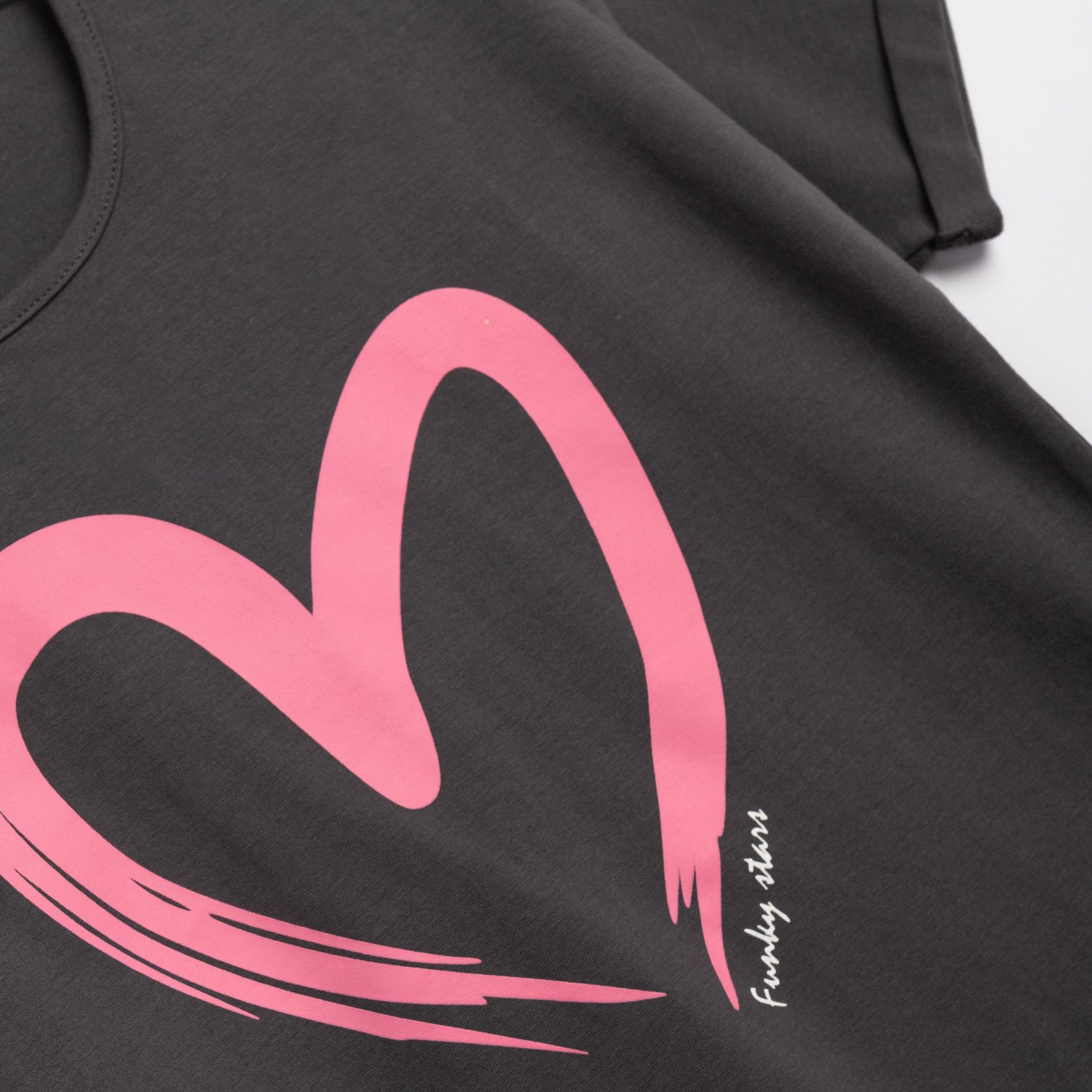 Μπλουζοφόρεμα με τύπωμα (καρδιές) και κολάν κάλτσα κάπρι λύκρα με τύπωμα allover σε χρώμα ανθρακί/candy pink για κορίτσι 6-16 ετών