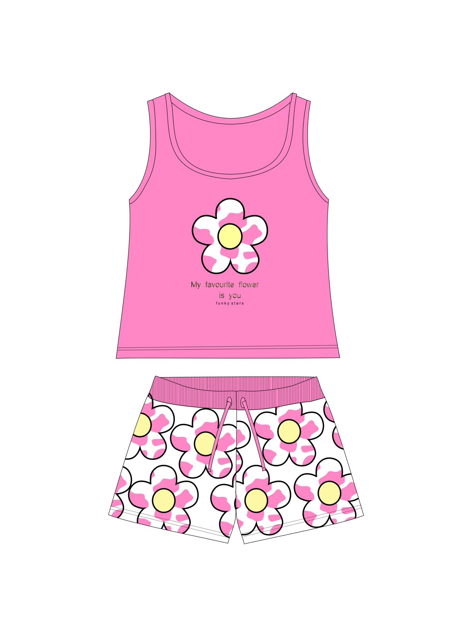 Σετ μπλούζα κάλτσα λύκρα με τύπωμα (λουλούδι) και σόρτς με τύπωμα σε χρώμα φωσφορούχο ροζ/λευκό για κορίτσι 1-6 ετών