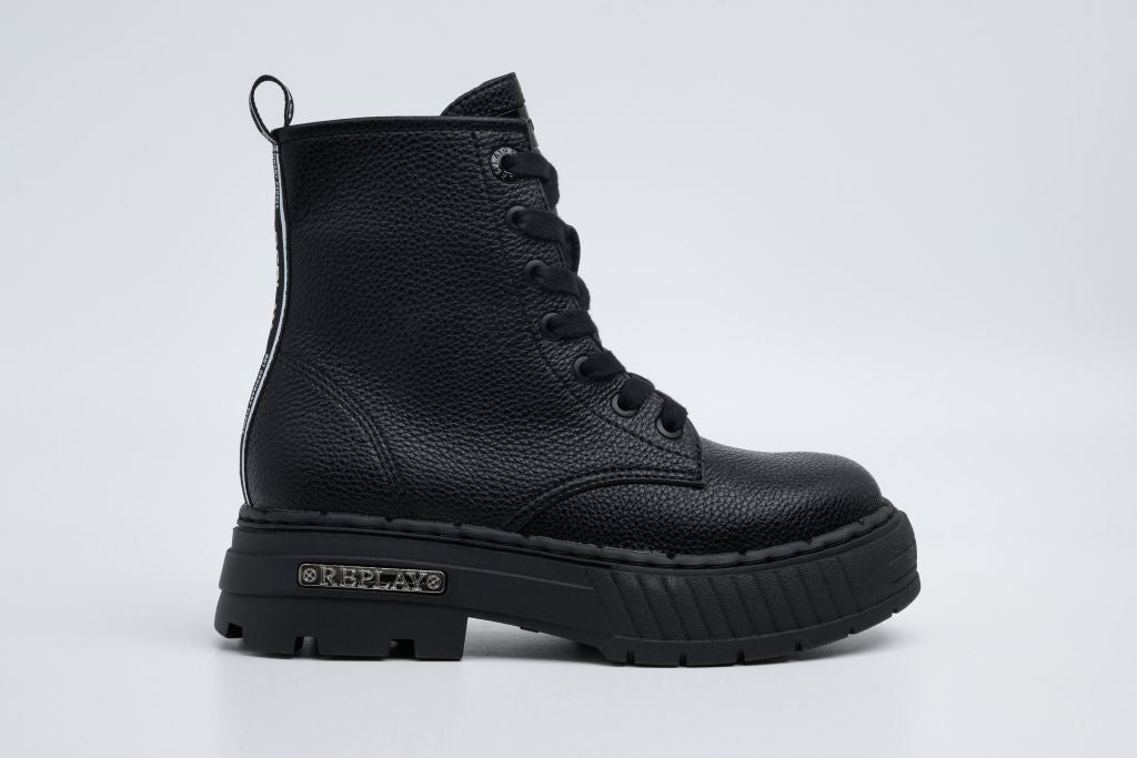 REPLAY JL270006S 0003 Δερμάτινα Παιδικά Αρβυλάκια με Κορδόνια Μαύρα