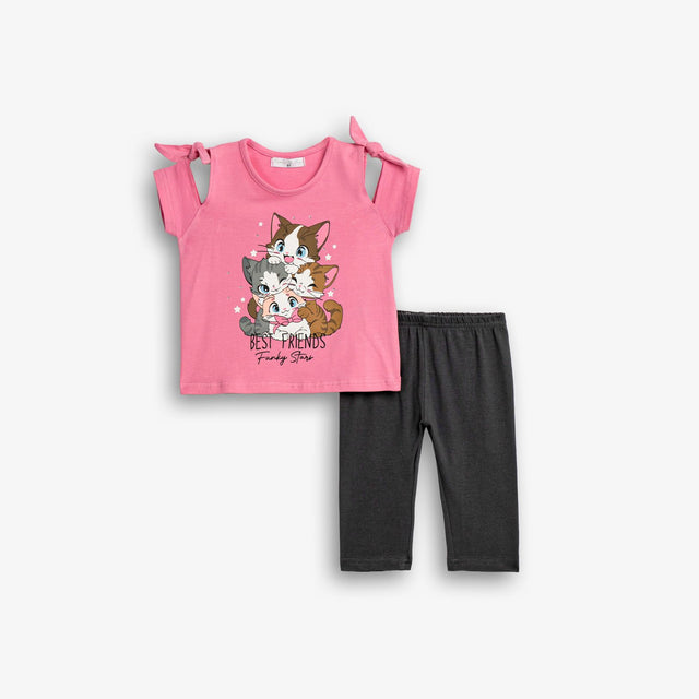 Σετ μπλούζα με τύπωμα (γάτες) και κολάν κάπρι κάλτσα σε χρώμα candy pink/μαύρο για κορίτσι 1-6 ετών