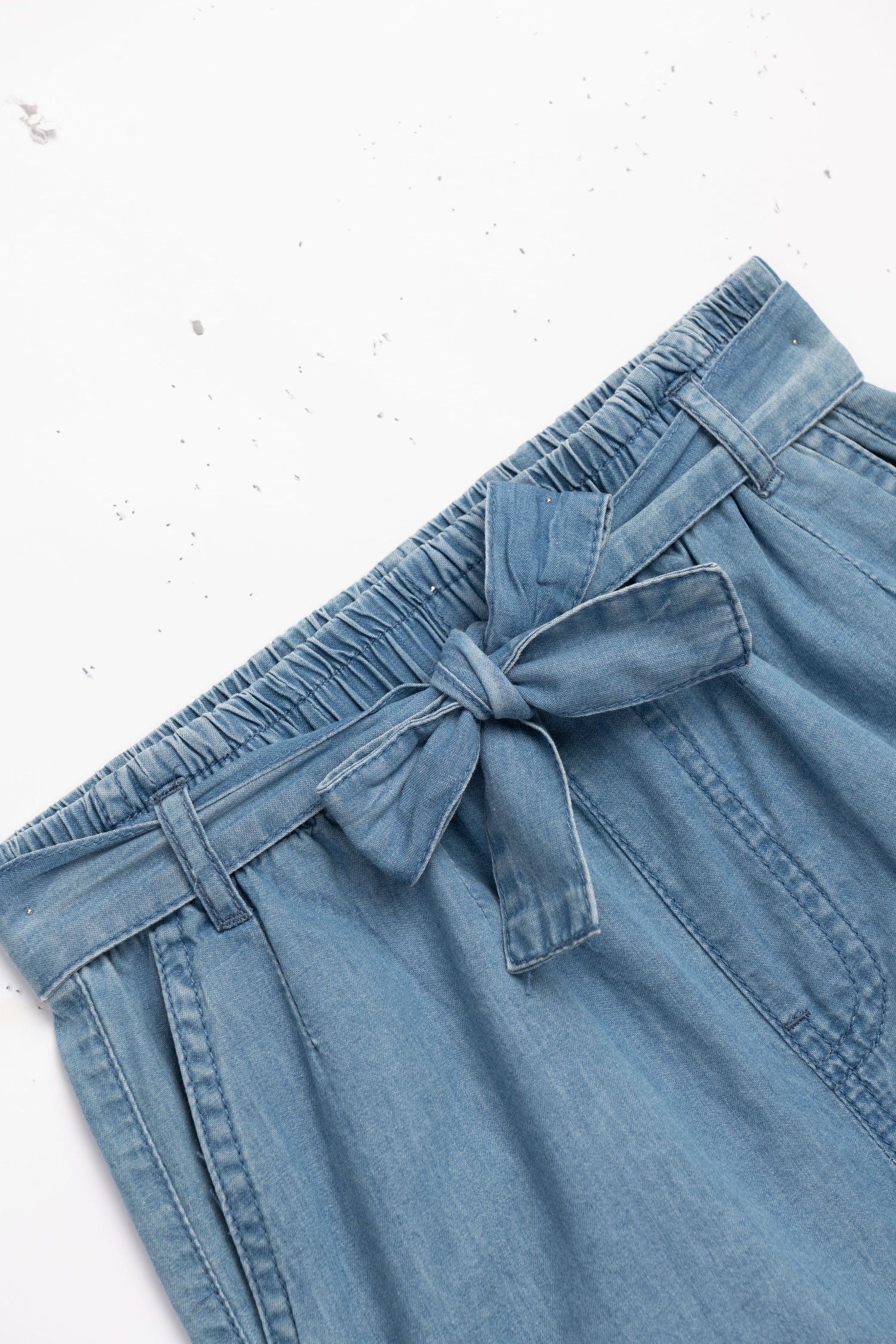Σόρτς τζίν λεπτό μαλακό με ζώνη σε χρώμα τύπος για κορίτσι 6-16 ετών