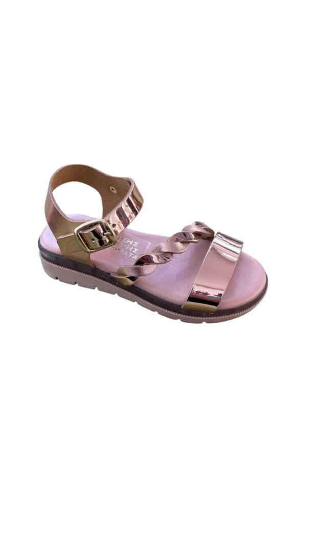 Bonito slippers Greek construction with anatomical leather sole. Suitable for everyday use, take off the style of the child. It provides stability due to the non-slip sole and closes with an adjustable clasp.