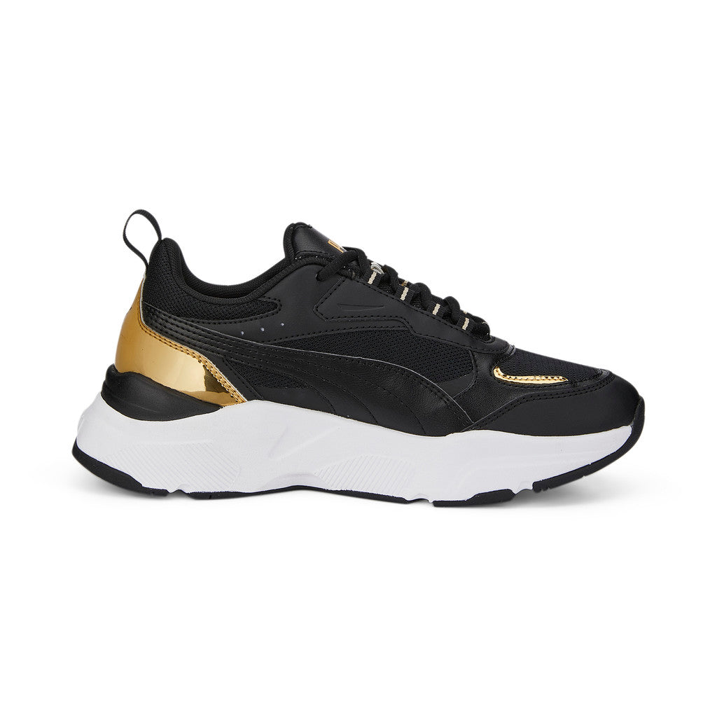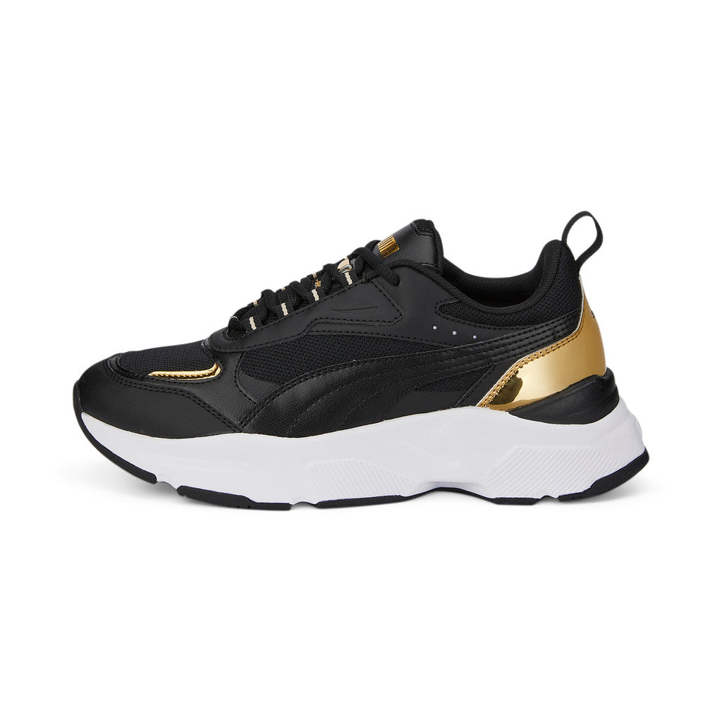 The Cassia Distressed sneakers from Puma can be worn at all times of the day. They are an ideal addition to your wardrobe, they are easy to combine and add height. Externally, I was characterized by laces, black with gold details that give it style and elegance.