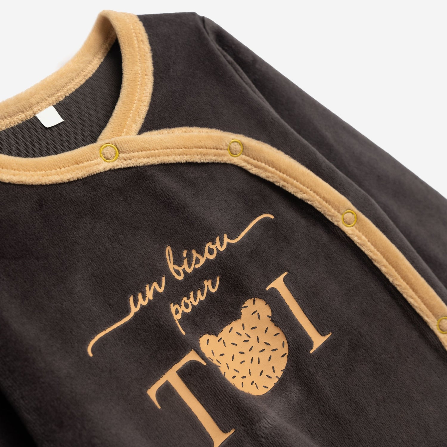 Φορμάκι μακρυμάνικο βελουτέ με τύπωμα σε χρώμα τύπος βρεφανάπτυξη για 1-9 μηνών αγόρι