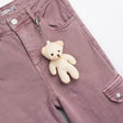 Παντελόνα τζήν λύκρα μαλακό με πλαΐνές τσέπες και μεταλλικό μπρελόκ αρκουδάκι για κορίτσι 6-16 χρονών σε χρώμα καμέλια