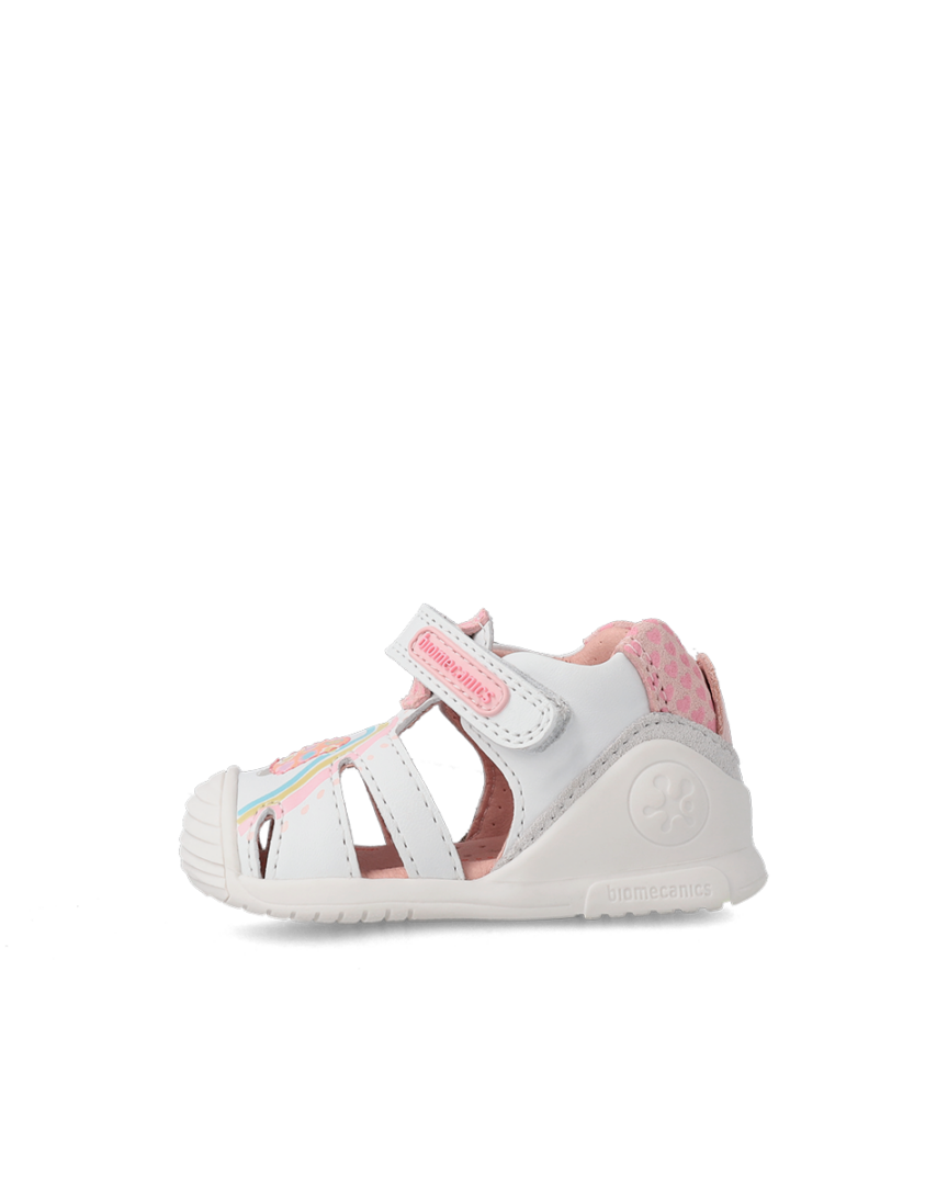 Κοριτσίστικο δερμάτινο παιδικό παπουτσοπέδιλο από την εταιρεία Biomecanics. Με δερμάτινο , αντιμικροβιακό και ανατομικό εσωτερικό πάτο.Ειδικά διαμορφωμένη και αντιολισθητική σόλα για σταθερά και πρωτα βήματα.Πλαϊνή στήριξη του αστραγάλου και της πτέρνας.Κλεινει με βέλκρο για εύκολη και σταθερη εφαρμογή.