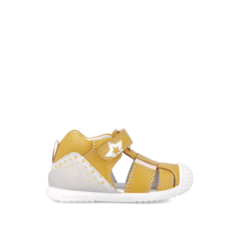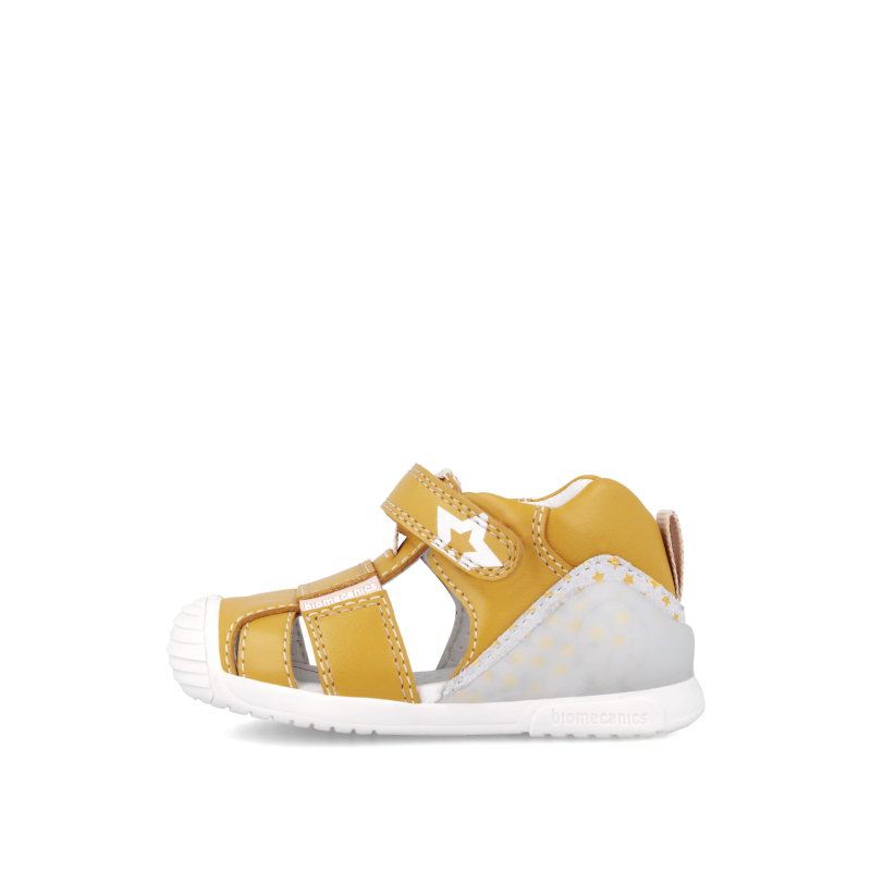 Δερμάτινο παιδικό παπουτσοπέδιλο από την εταιρεία Biomecanics. Με δερμάτινο , αντιμικροβιακό και ανατομικό εσωτερικό πάτο.Ειδικά διαμορφωμένη και αντιολισθητική σόλα για σταθερά και πρωτα βήματα.Πλαϊνή στήριξη του αστραγάλου και της πτέρνας.Κλεινει με βέλκρο για εύκολη και σταθερη εφαρμογή.