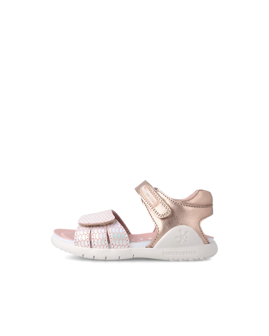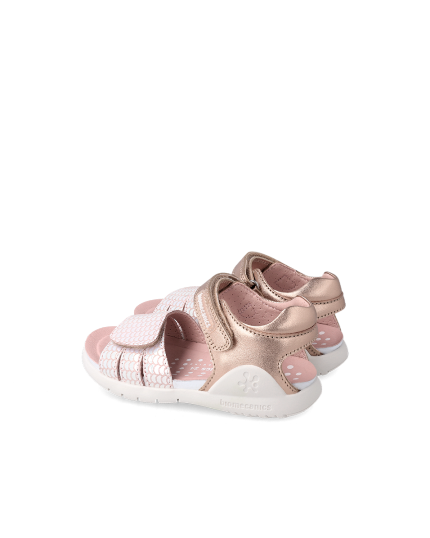 Παιδικα πεδιλα της εταιρειας Biomecanics που προσφερει ανεση,στιλ και κομψοτητα σε κάθε εμφανιση του παιδιου.Διαθετει δερματινο πατο και αντιολισθητικη σολα.Κλεινει με δυο velcro για καλητερη εφαρμογη στο ποδι και για ευκολια χρησης.