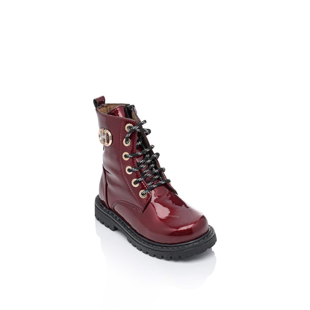 Bonito Αρβυλακι λουστρινι κοκκινο ελληνικης κατασκευεις..Δερματινο με ανατομικο πελμα και υφασματινη εσωτερικη επενδυση.Κατασκευασμενο με αντιολησθητικη σολα ,κλεινει με κορδονια και φερμουαρ για ευκολη χρηση.Διακοσμητικη αγκραφα με στρας.