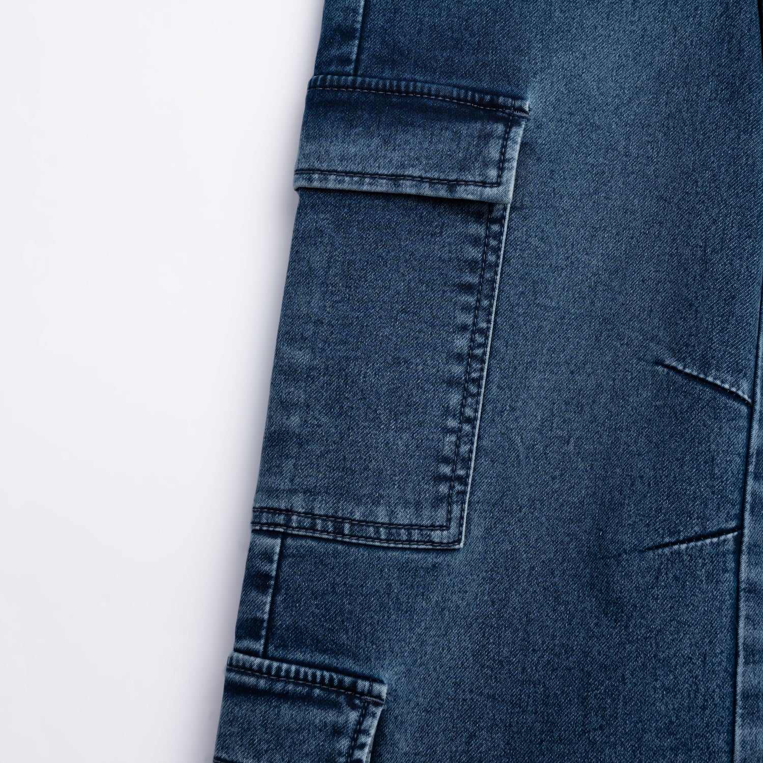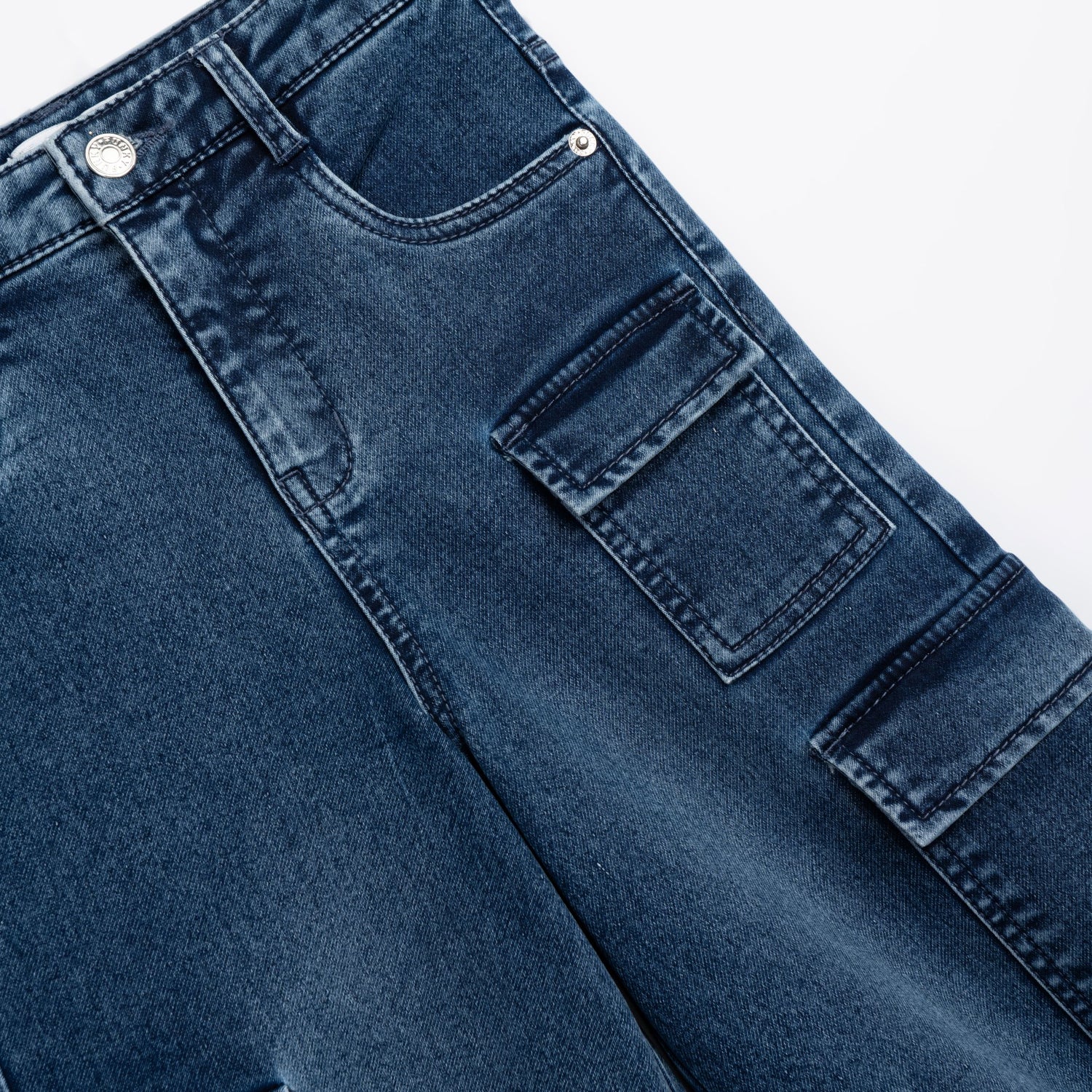 Παντελόνι τζν λύκρα μαλακό cargo για κορίτσι 6-16 χρονών σε χρώμα μπλε