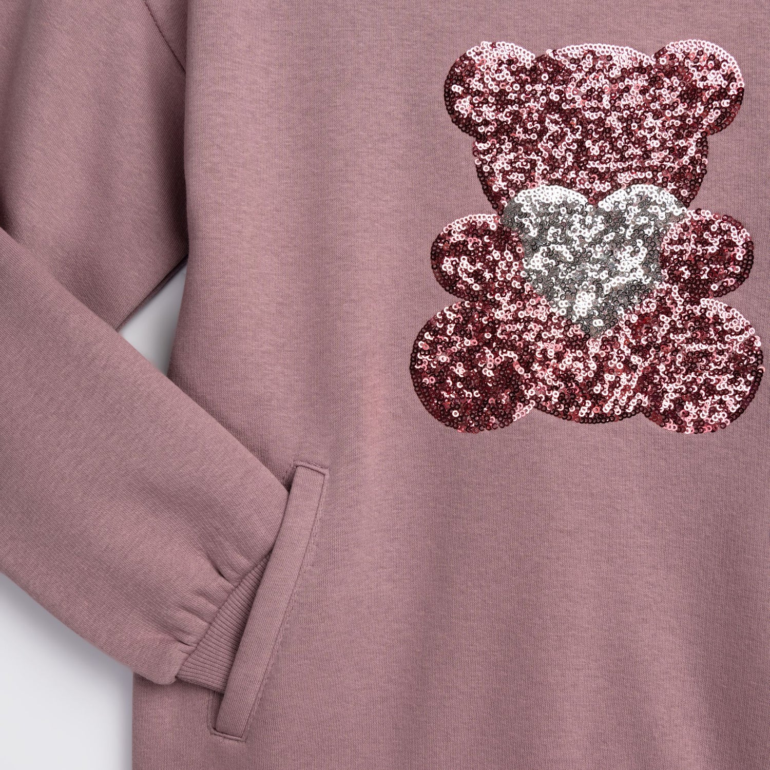 Φόρμα φούτερ με τύπωμα αρκουδάκι από παγιέτα και στο παντελόνι παγιέτα στο πλαι για κορίτσι 6-16 χρονών σε χρώμα καμέλια/καμέλια