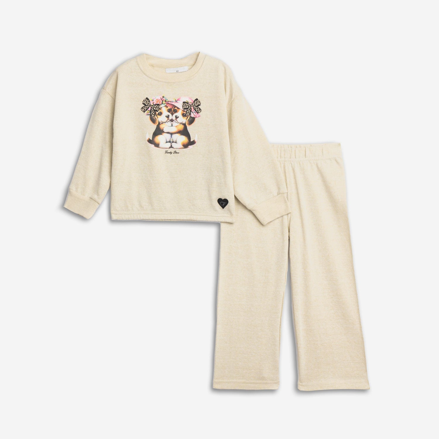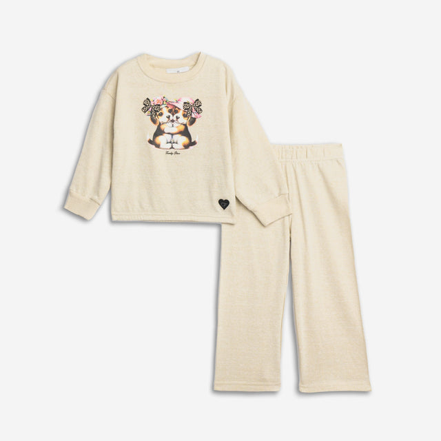 Σετ μπλούζα με παντελόνα φούτερ για κορίτσι 2-6 ετών σε χρώμα χρυσό λούρεξ/ χρυσό λούρεξ με τύπωμα στην μπλούζα (σκυλάκι)