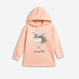 Φόρεμα κάλτσα λύρα με κουκούλα για κορίτσι 2-6 ετών σε χρώμα crintz rose με τύπωμα (λαγουδάκι)