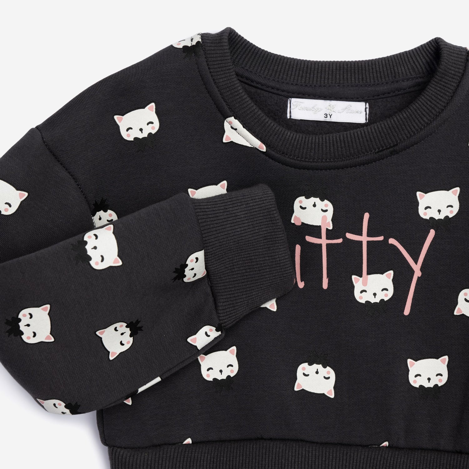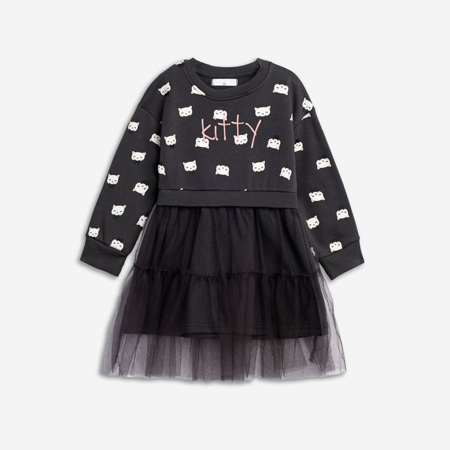 Φόρεμα φούτερ με τούλι για κορίτσι 2-6 ετών σε χρώμα ανθρακί με τύπωμα( γατούλες)