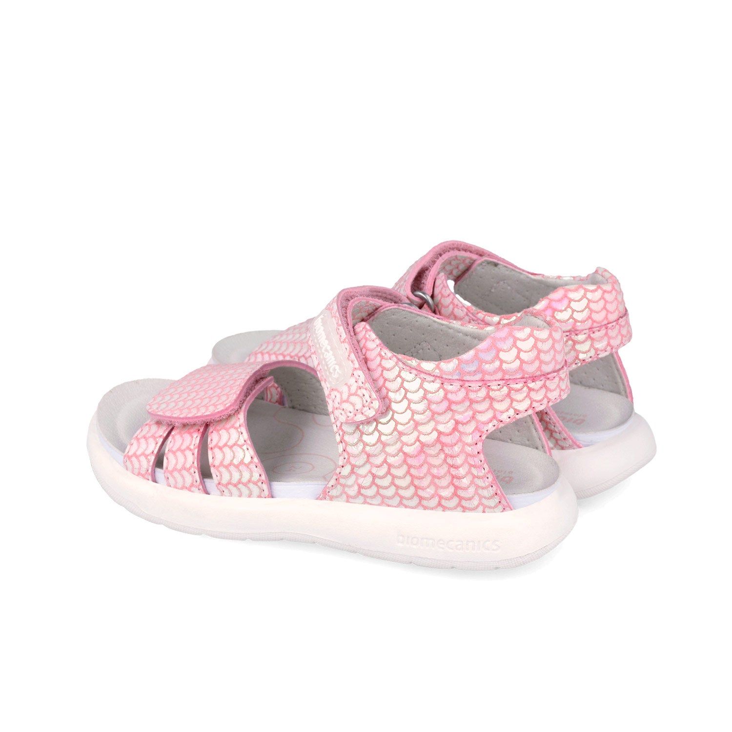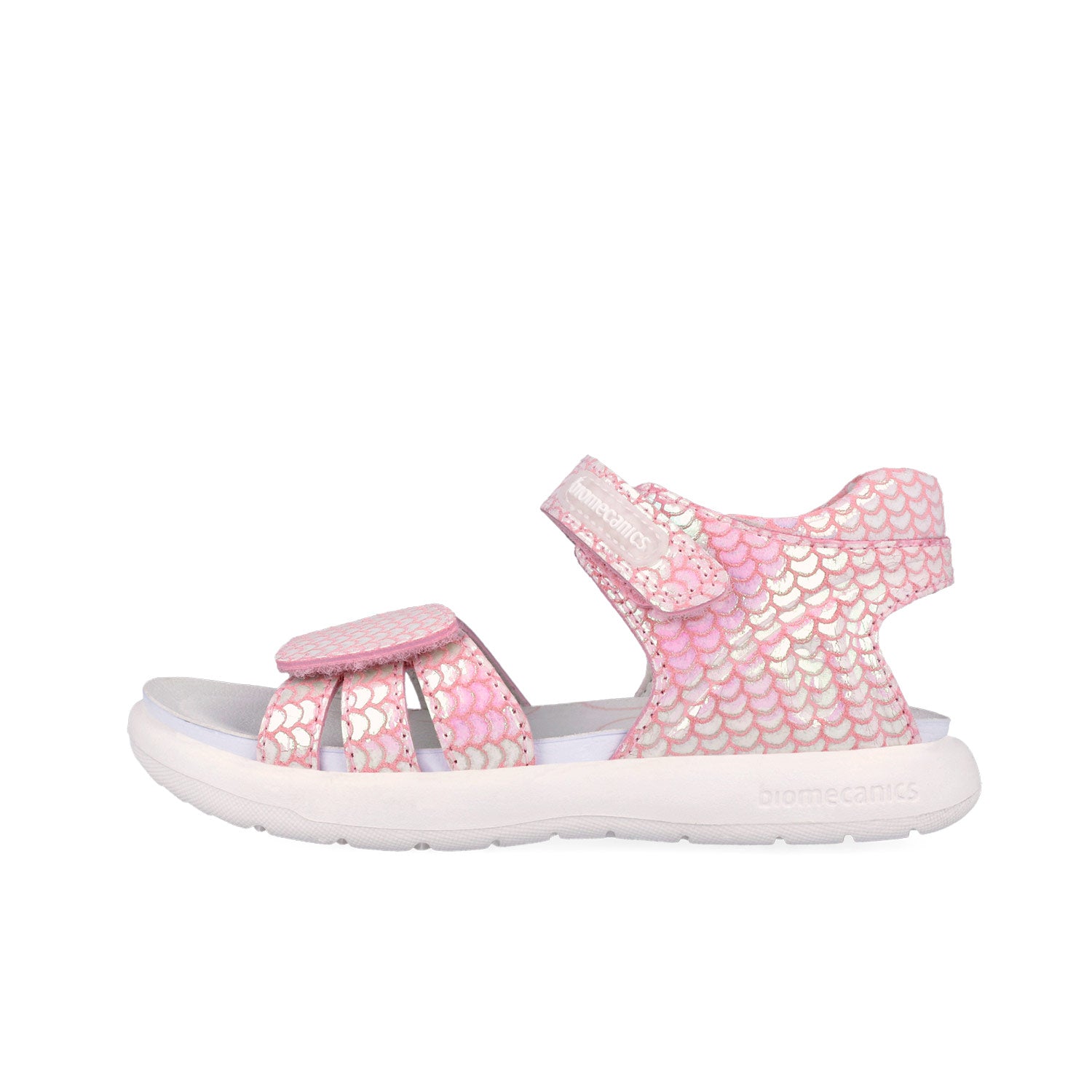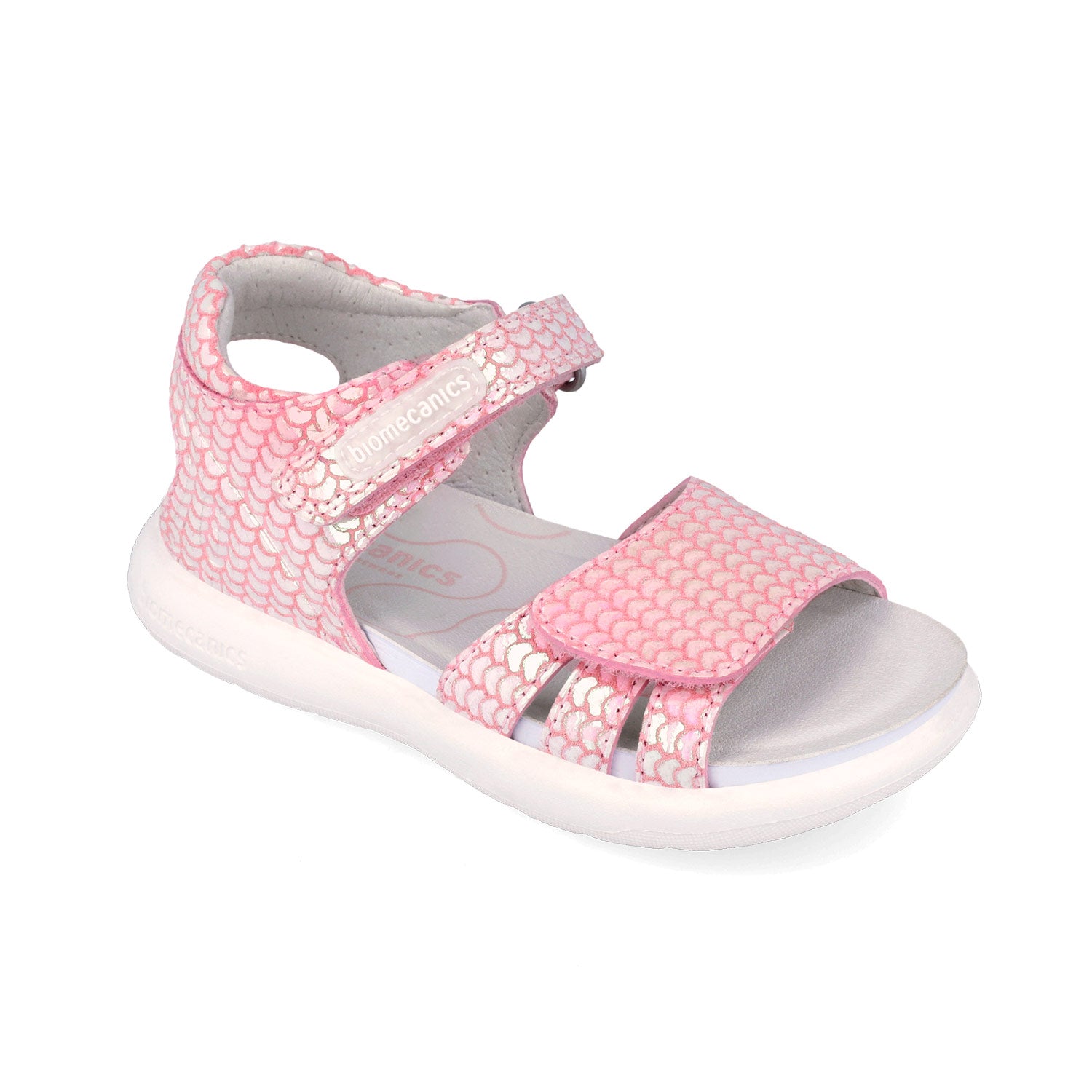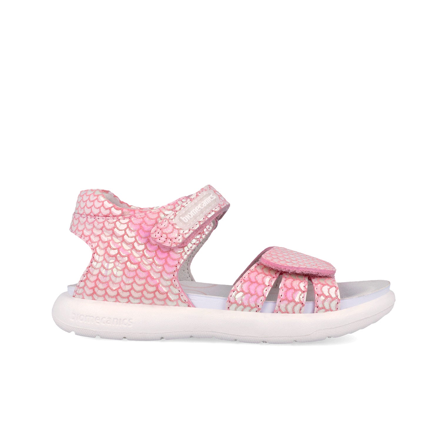 Παιδικό πέδιλο Biomecanics μπρος-πίσω με κομψό και καλοκαιρινό σχεδιασμό, ιδανικό για τις καθημερινές εμφανίσεις των μικρών. Το επάνω μέρος είναι σε ροζ απόχρωση με ιριδίζον ανάγλυφο μοτίβο, που προσφέρει λαμπερό και παιχνιδιάρικο χαρακτήρα.