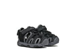 Άνετα, ελαφριά και αδιάβροχα παιδικά σανδάλια με κλειστά δάχτυλα. Αυτή η έκδοση συνδυάζει μαυρο και ανοιχτό γκρι και διαθέτει άνω μέρος από ανάγλυφο υλικό με εφέ δέρματος και διχτυωτό υλικό. Το Multy έχει εξωτερική σόλα που προσφέρει καλό κράτημα ακόμα και σε ολισθηρές επιφάνειες και είναι ιδανικό για υπαίθριες περιπέτειες.