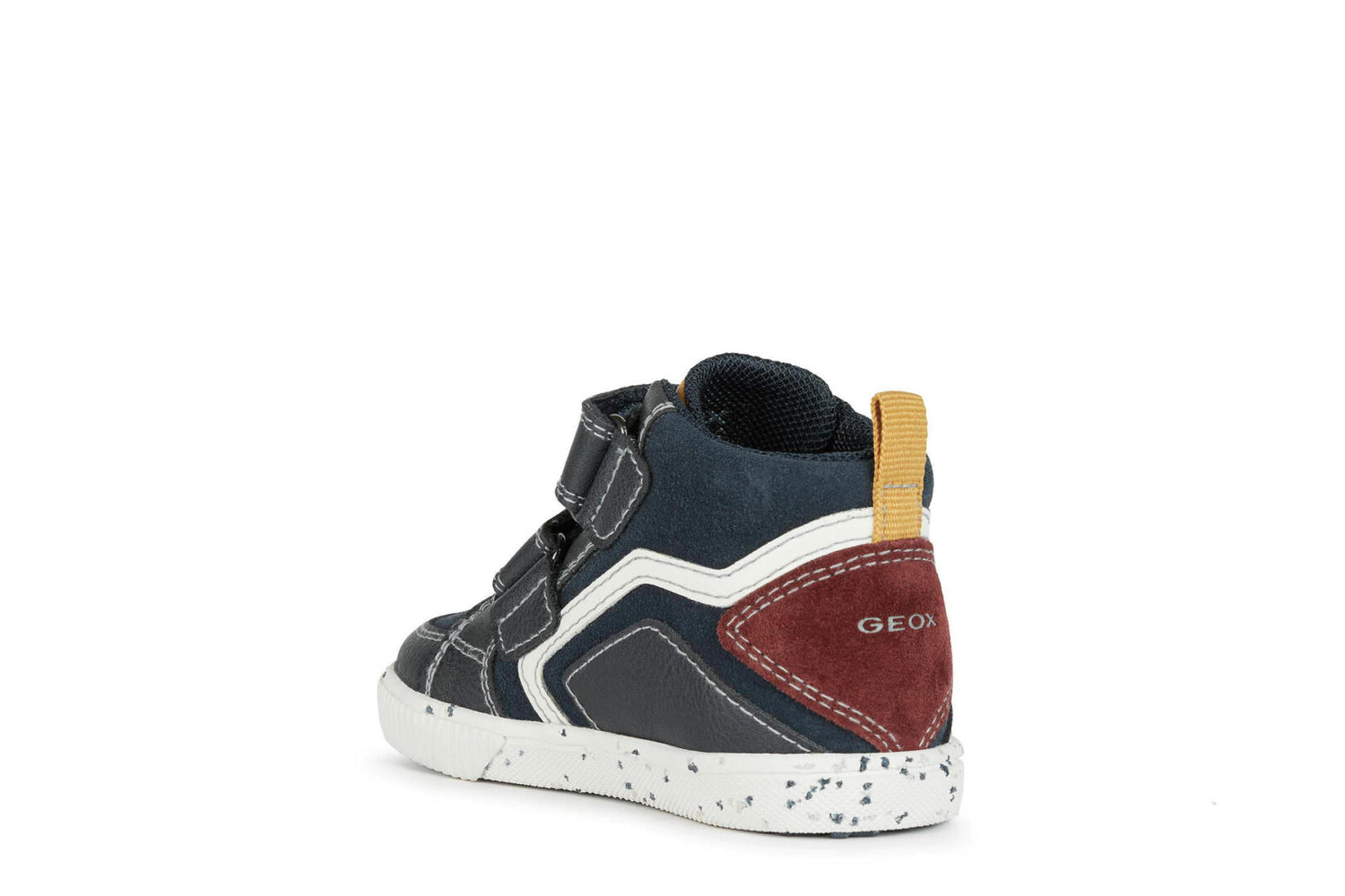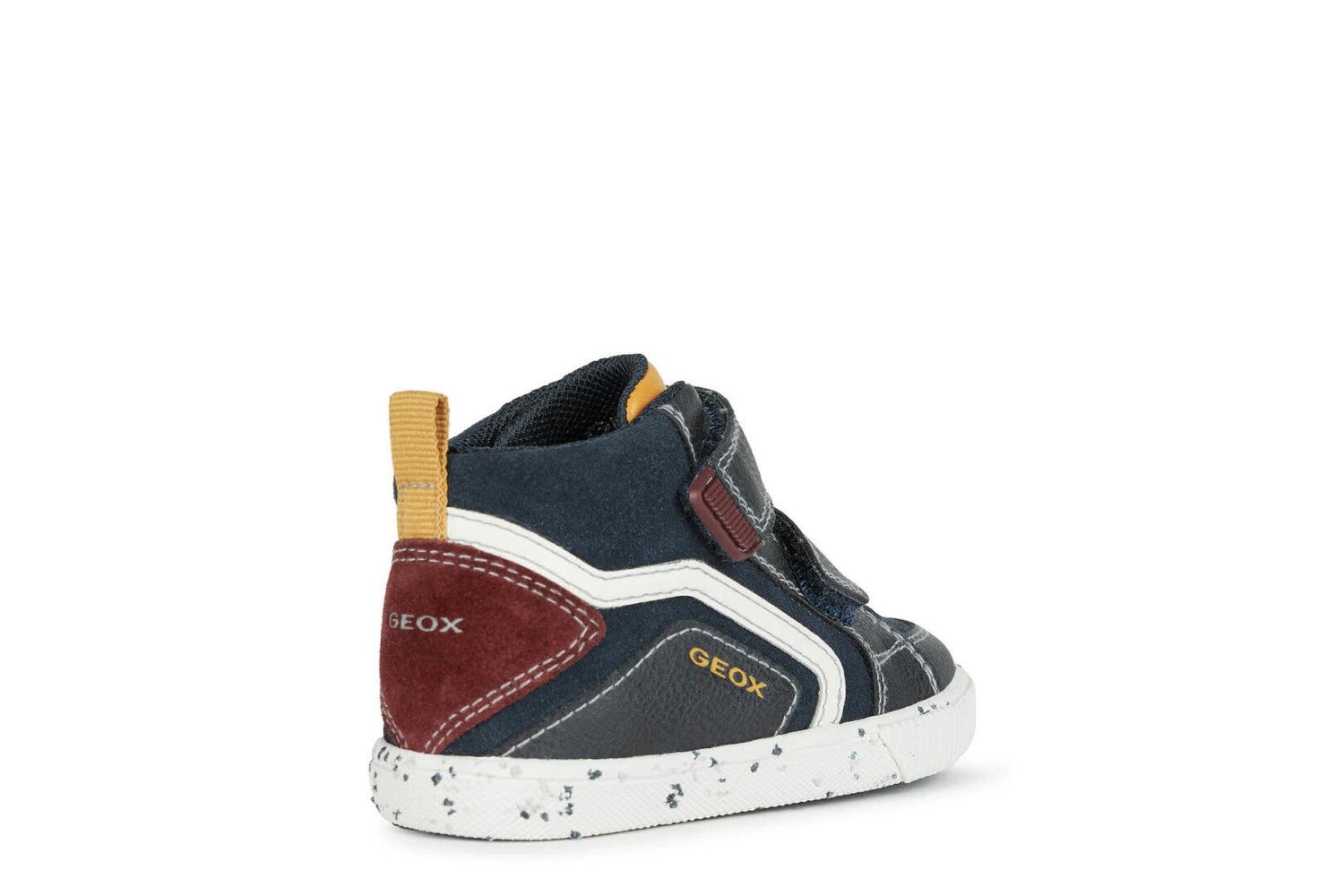 Παιδικά sneakers της εταιρείας Geox, τα οποία αποτελούν την πιο κλασική επιλογή για καθημερινή χρήση, χωρίς να κουράζουν τα πόδια των παιδιών. Είναι ψηλά και καλύπτουν τον αστράγαλο καθώς μοιάζουν με μποτάκι, παρέχουν πολύ καλή στήριξη και προστατεύουν τον αστράγαλο από ανεπιθύμητα ατυχήματα.Είναι κατασκευασμένα από δέρμα,με ανατομικο και δερματινο πατο.Σολα αντιολησθητικη και αναπνευσημη..Κλεινει με velcro.