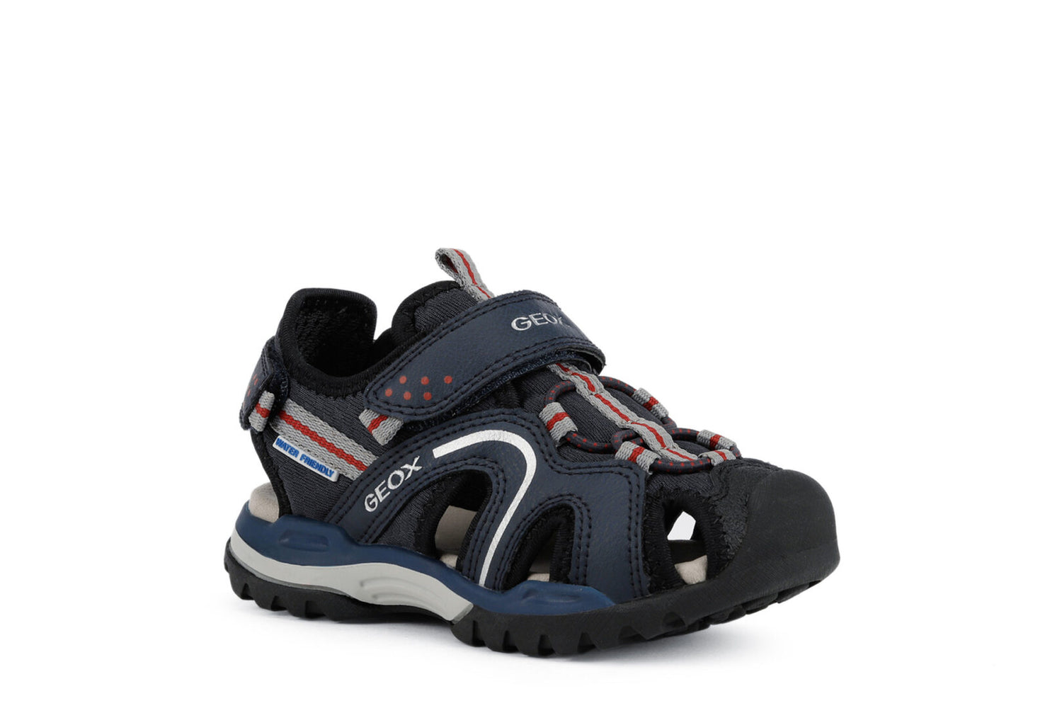 Παιδικά ανατομικά παπουτσοπέδιλα Geox με δερμάτινο αντιβακτιριδιακό πάτο κατασκευασμένο με την τεχνολογία Geox Respira που επιτρέπει στο πόδι να αναπνέει.Είναι φιλικά προς το νερό από υλικά που στεγνώνουν γρήγορα και ανθεκτικά.