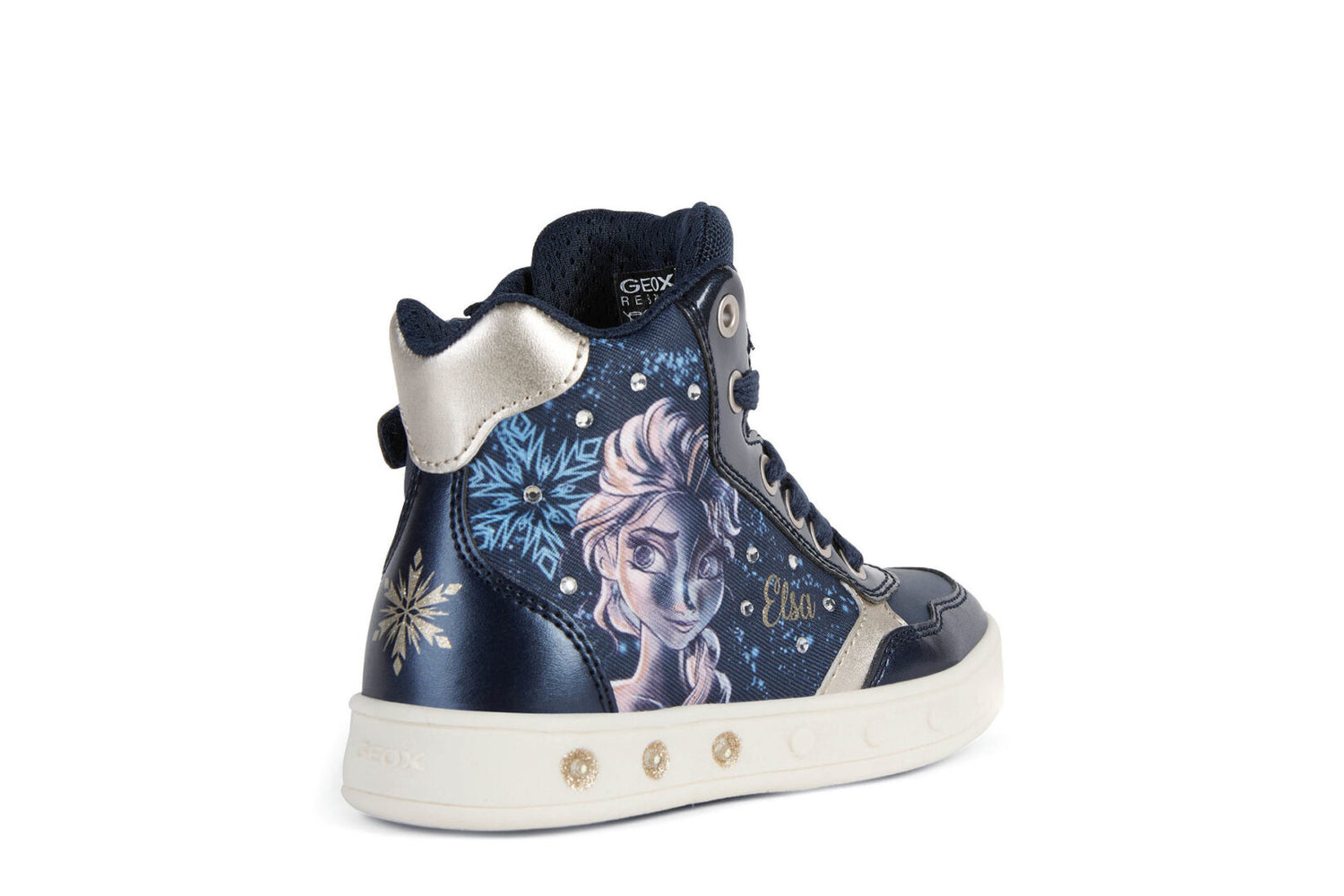 Παιδικά sneakers της εταιρείας Geox, τα οποία αποτελούν την πιο κλασική επιλογή για καθημερινή χρήση.Είναι ψηλά και καλύπτουν τον αστράγαλο καθώς μοιάζουν με μποτάκι.Διαθετει δερματινο ανατομικο πατο και αντιολισθητικη σολα.Επισης εχει φωτάκια, τα οποία συνήθως βρίσκονται στην ενδιάμεση σόλα, και ενεργοποιούνται με το βάδισμα.