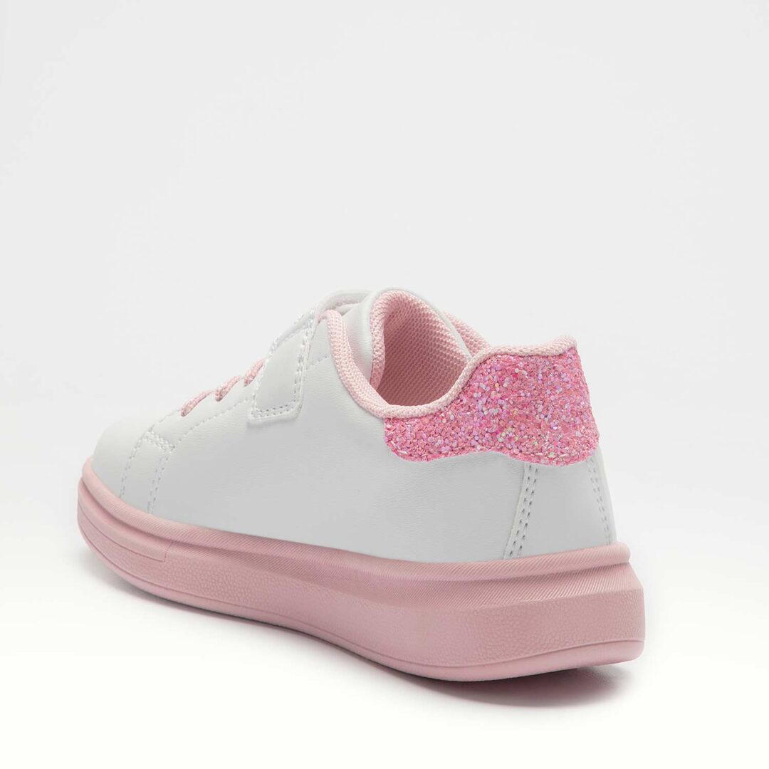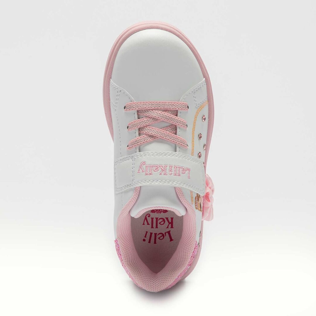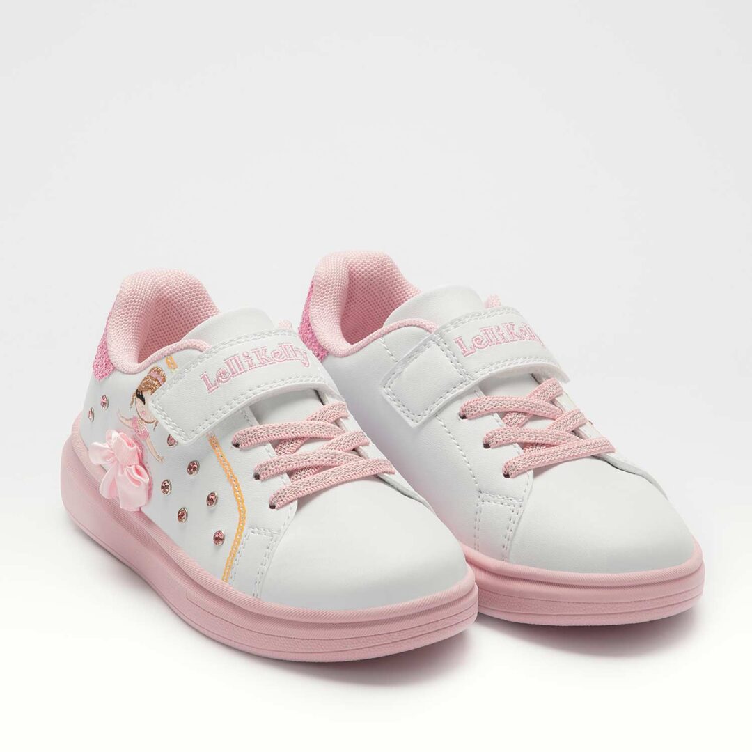 Παιδικό Sneaker Lelli Kelly LK4826-AA52 σε λευκό χρώμα με ροζ λεπτομέρειες, με velcro και ελαστικά κορδόνια για εύκολη εφαρμογή. Συνθετικό δέρμα στο άνω μέρος, με σχέδιο μπαλαρίνα στο πλάι που αλλάζει φόρεμα και στρασάκια.