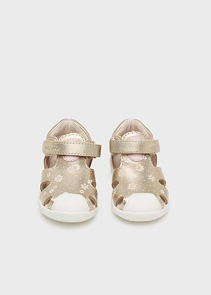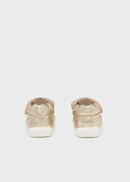 Παπουτσοπέδιλα από την εταιρία Mayoral με ανοίγματα σε διάφορα σημεία ώστε να ανακυκλώνεται ο αέρας και να αναπνέει το πόδι. Επιπλέον παρέχουν σταθερότητα και ελευθερία κινήσεων κατά την εφαρμογή. Δένουν εύκολα με αυτοκόλλητο velcro ώστε να μπορεί το παιδί να είναι αυτόνομο και να δένει τα παπούτσια του.Διαθετουν δερματινο πατο και αντιολισθητικη σολα για ανετο και σταθερο περπατημα.