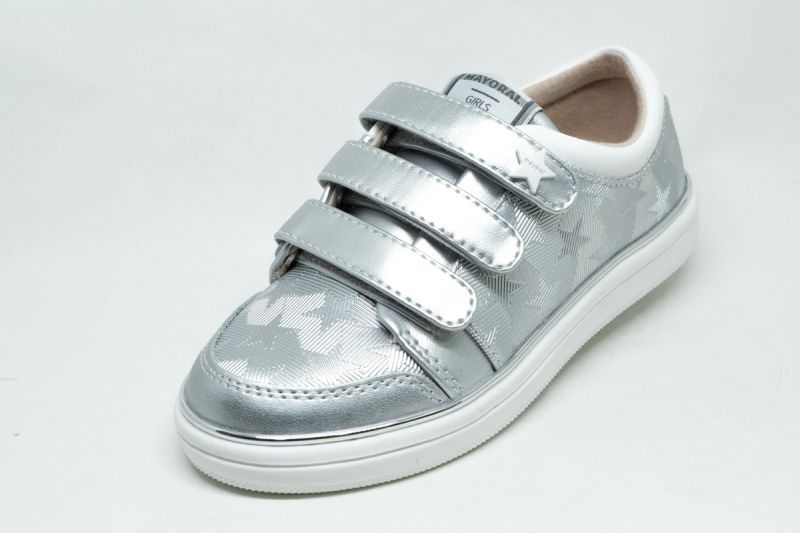 κοριτσι παιδικο sneaker με 3 velcro silver