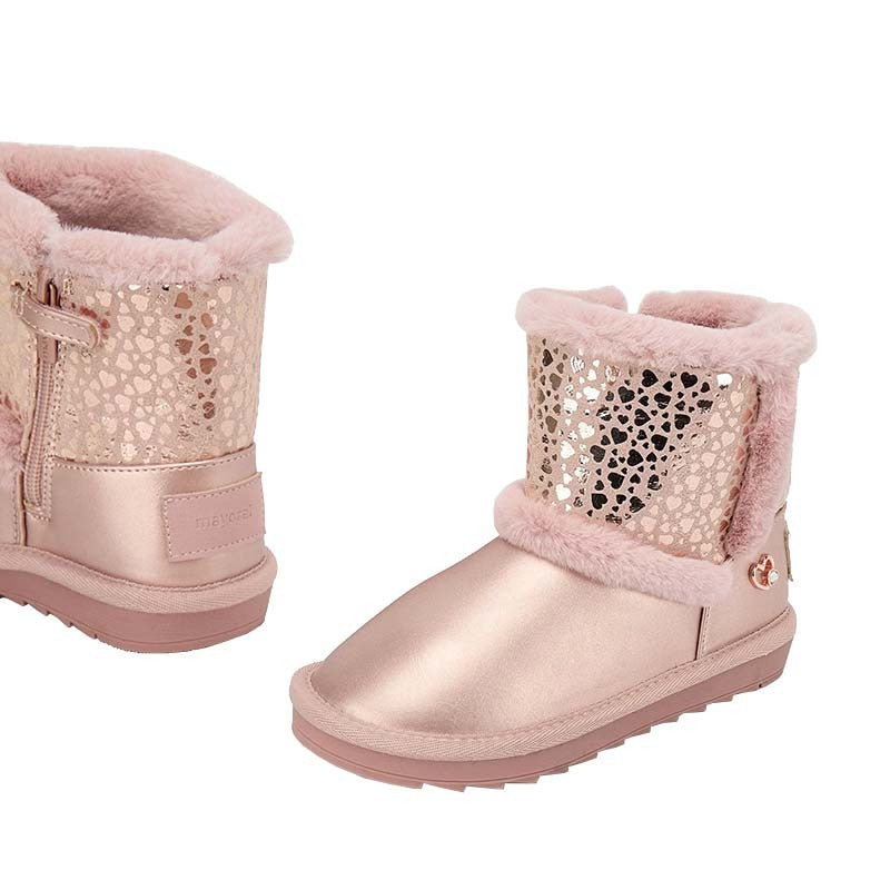Μοντέρνα παιδικά μποτάκια Mayoral - 42575 για κορίτσια που προσφέρουν ένα casual τόνο στο look. Περιλαμβάνουν φερμουάρ για εύκολη εφαρμογή και αφαίρεση. Σε ροζ χρώμα με γούνινες λεπτομέρειες που ενθουσιάζουν. Διαθέτουν εσωτερική επένδυση γούνα για απόλυτη ζεστασιά. Άριστη ποιότητα κατασκευής, ιδανικά για τα πρώτα βήματα.