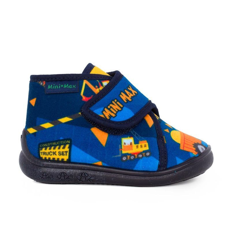 Ανατομικό κλειστό παντοφλάκι της εταιρείας MINI MAX. Διαθέτει αντιολισθητική σόλα και ανατομική δερμάτινη εσωτερική σόλα με αφαιρούμενο αντιβακτηριακό πάτο. Το εσωτερικό βαμβακερό ύφασμα αναπνέει και είναι 0% αζωχρώματα, τοξικά και πλαστικά. Το επάνω εξωτερικό μέρος της παντόφλας έχει χαρούμενα χρώματα και σχέδια.