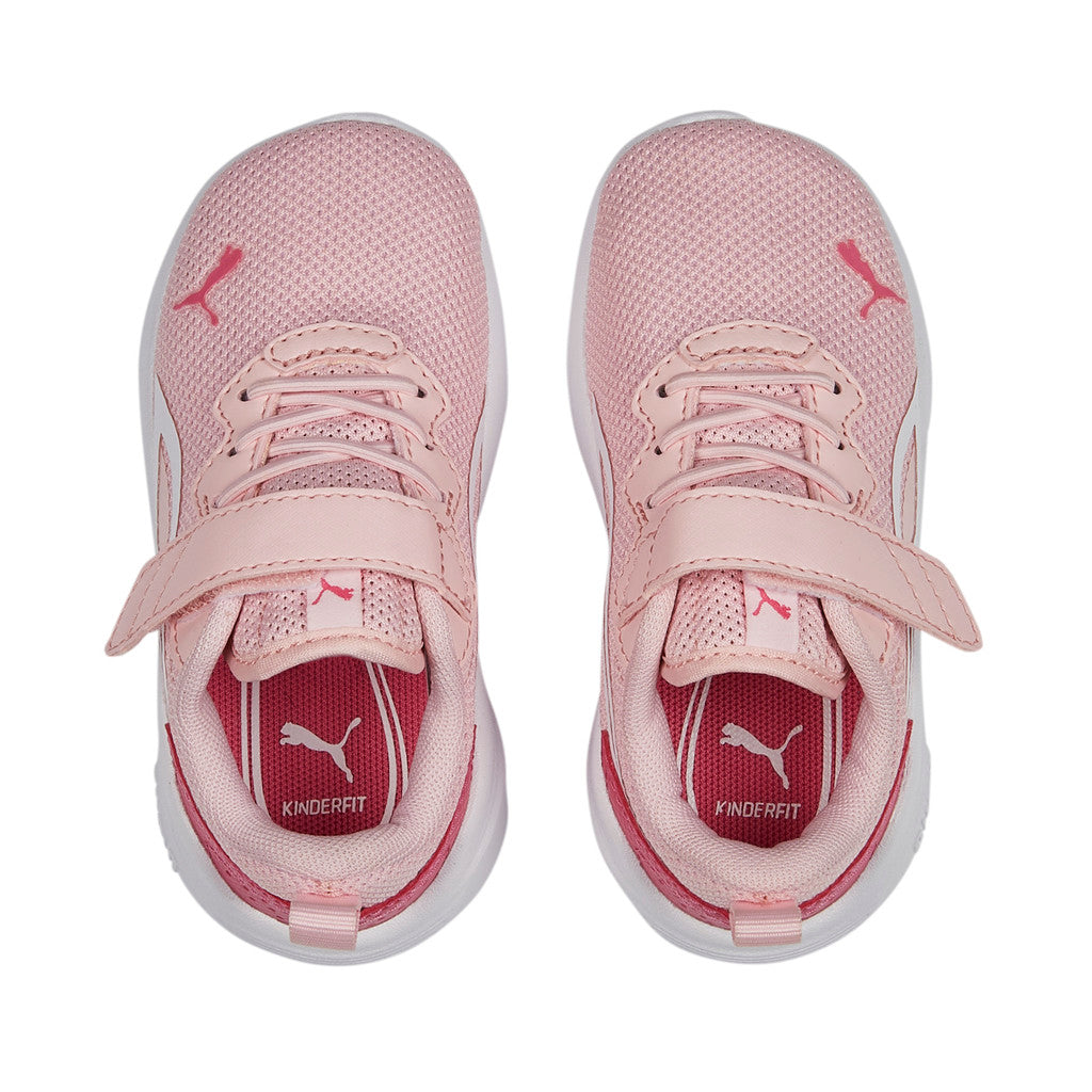 Παιδικά αθλητικά παπούτσια Puma για τρέξιμο. Διαθέτουν ιδιαίτερα κομψό σχεδιασμό, ενώ η σόλα τους προσαρμόζεται στο σχήμα του πέλματος για εξατομικευμένη, άνετη εφαρμογή.Άνω μέρος από ύφασμα και δέσιμο με ελαστικά κορδόνια και αυτοκόλλητο velcro.
