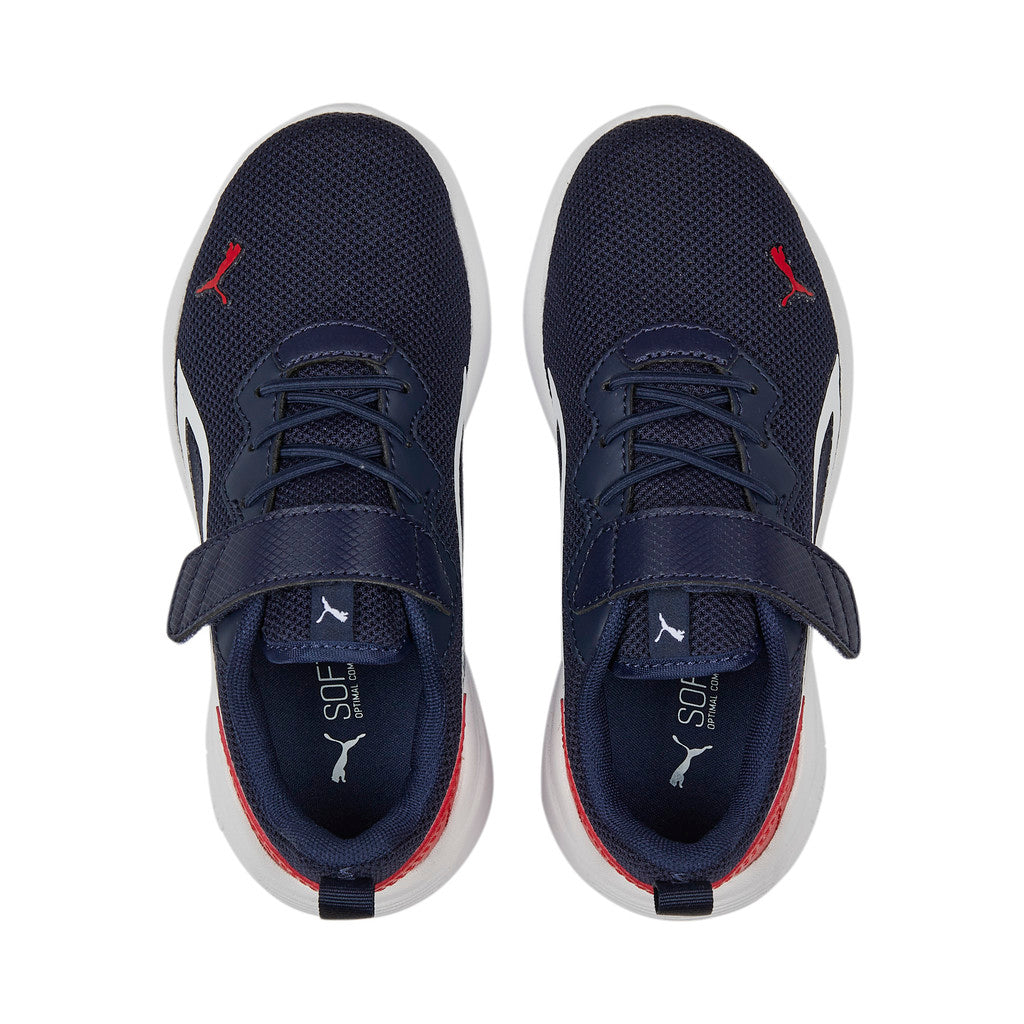 Παιδικά αθλητικά παπούτσια Puma SoftFoam για τρέξιμο. Διαθέτουν ιδιαίτερα κομψό σχεδιασμό, ενώ η σόλα τους προσαρμόζεται στο σχήμα του πέλματος για εξατομικευμένη, άνετη εφαρμογή.Άνω μέρος από ύφασμα και δέσιμο με ελαστικά κορδόνια και αυτοκόλλητο velcro.