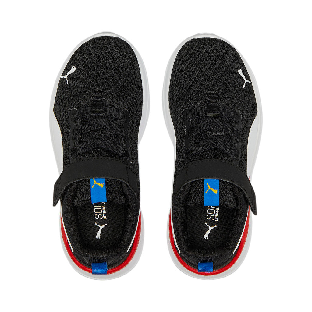 Παιδικά αθλητικά παπούτσια Puma για τρέξιμο. Διαθέτουν ιδιαίτερα κομψό σχεδιασμό, ενώ η σόλα τους προσαρμόζεται στο σχήμα του πέλματος για εξατομικευμένη, άνετη εφαρμογή.Άνω μέρος από ύφασμα και δέσιμο με ελαστικά κορδόνια και αυτοκόλλητο velcro.Μαλακός Softfoam+ εσωτερικός πάτος, σόλα EVA για άνεση χωρίς βάρος.