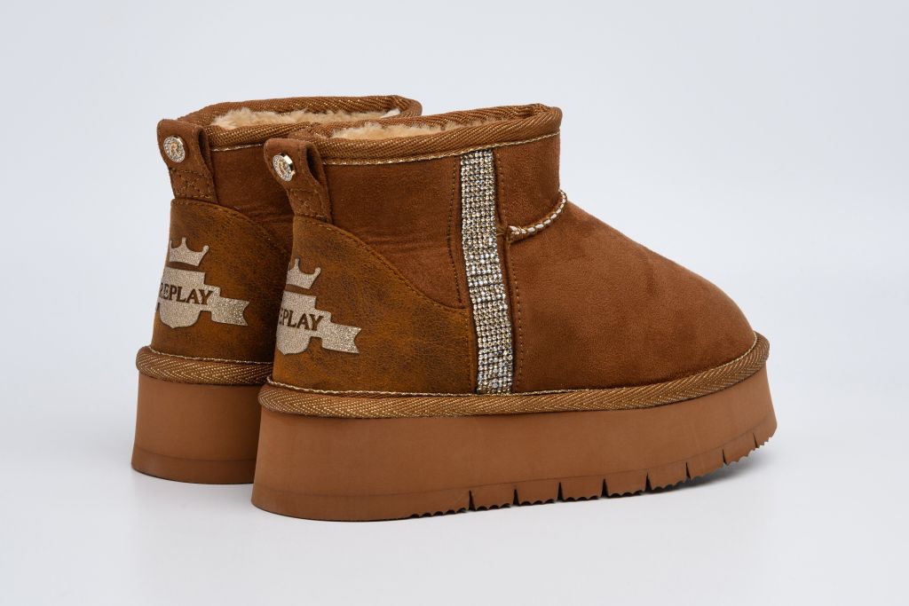 Μπότα Replay καφέ (JF250002T-0012 BROWN) από τη Replay. Παιδικά μποτάκια αυστραλιανού τύπου από συνθετικό υλικό στο εξωτερικό και εύκαμπτη αντιολισθητική σόλα από καουτσούκ. Ιδανική επιλογή για προστασία στις κρύες μέρες του χειμώνα. Στο εσωτερικό είναι γεμάτα με γούνα για να κρατούν τα πόδια ζεστά. Έχουν κατασκευαστεί από συνδυασμό οικολογικών υλικών, τα οποία προσφέρουν ζεστασιά και προσαρμόζονται στη φόρμα του ποδιού, παρέχοντας επιπλέον άνεση. Φοριούνται σαν κάλτσα.