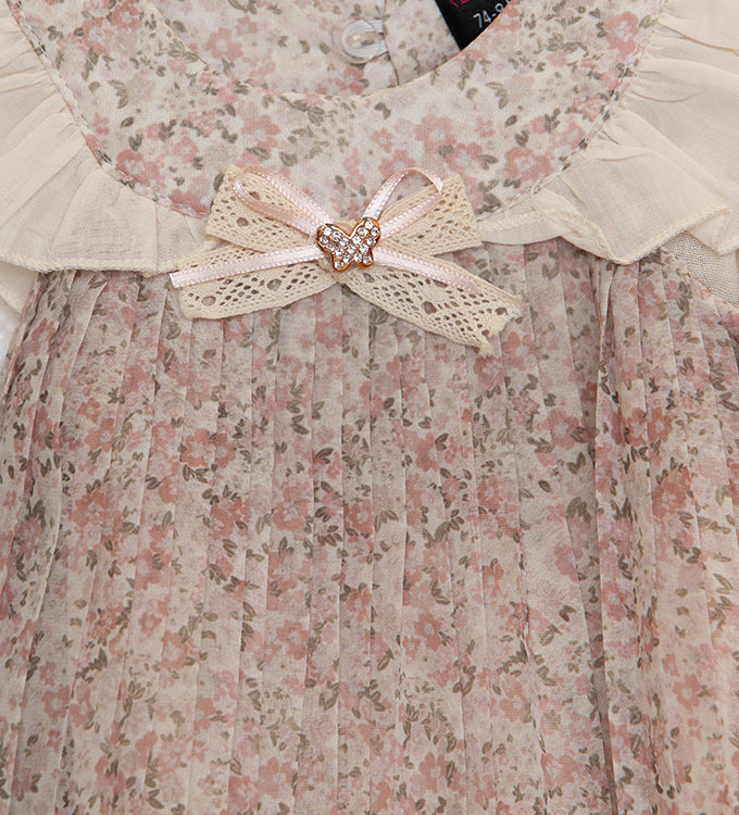Το παιδικό ρούχο restart της φωτογραφίας είναι ένα ιδιαίτερα κομψό και ρομαντικό αμάνικο φόρεμα, ιδανικό για επίσημες περιστάσεις ή βαπτίσεις.